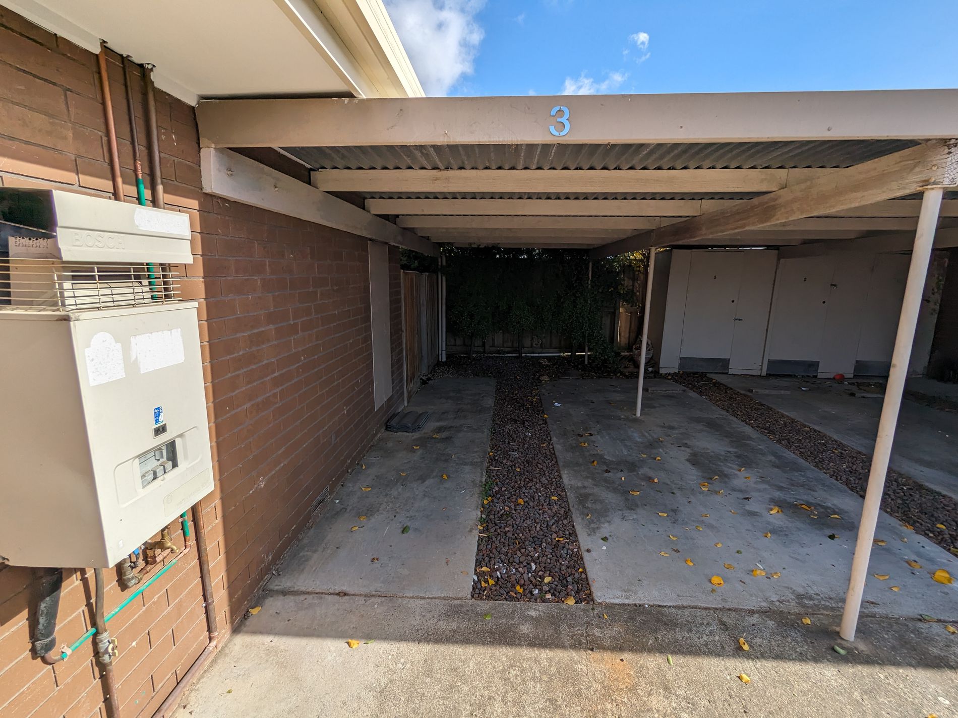 * Carport with storage cupboard