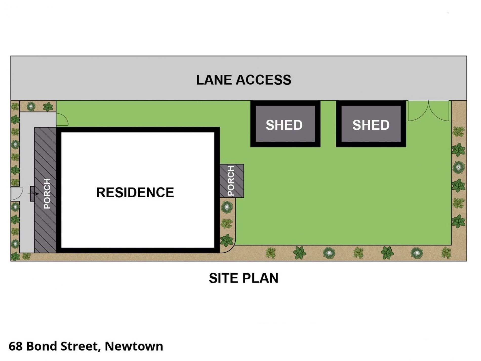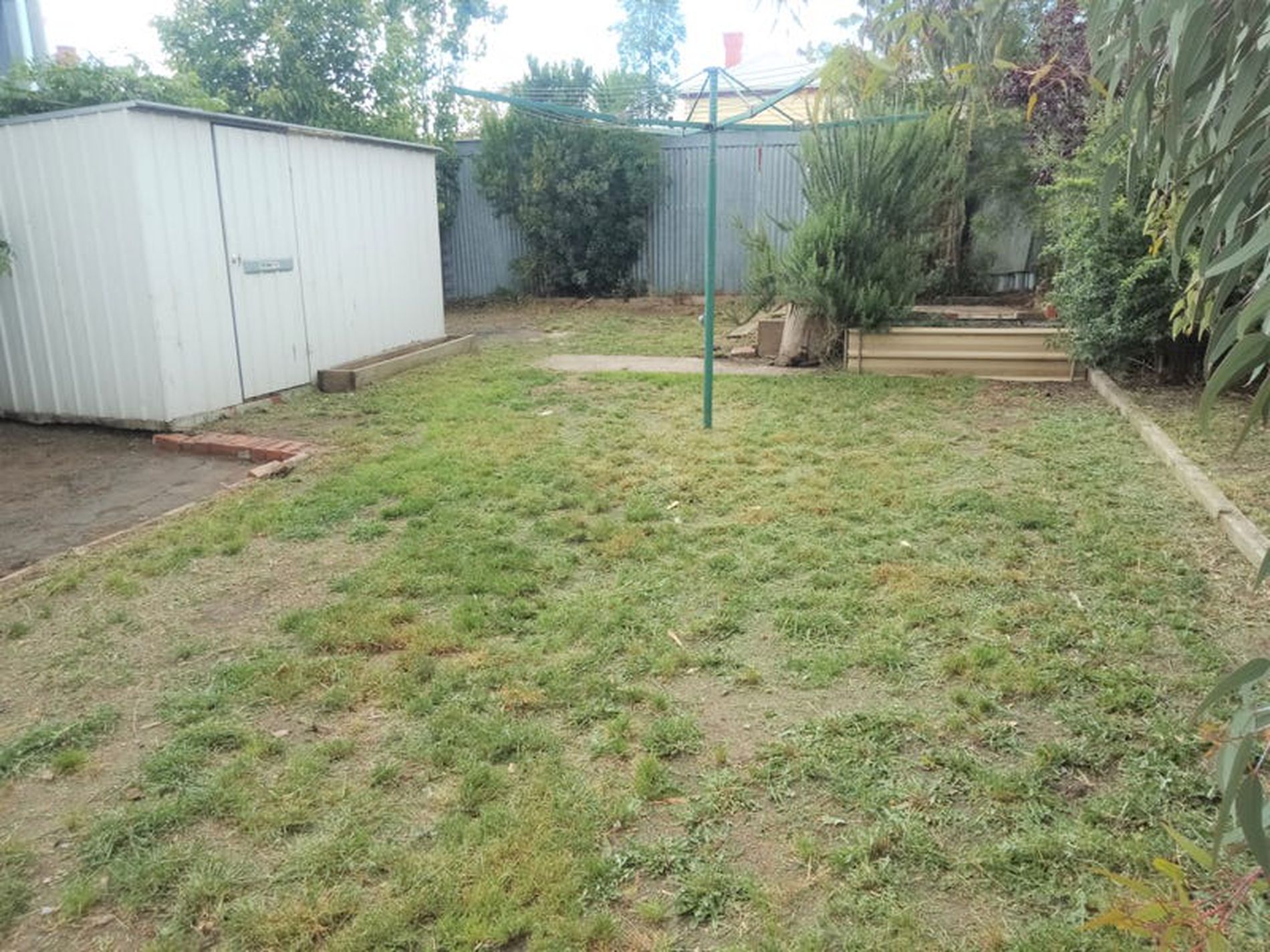 * Rear yard with large shed