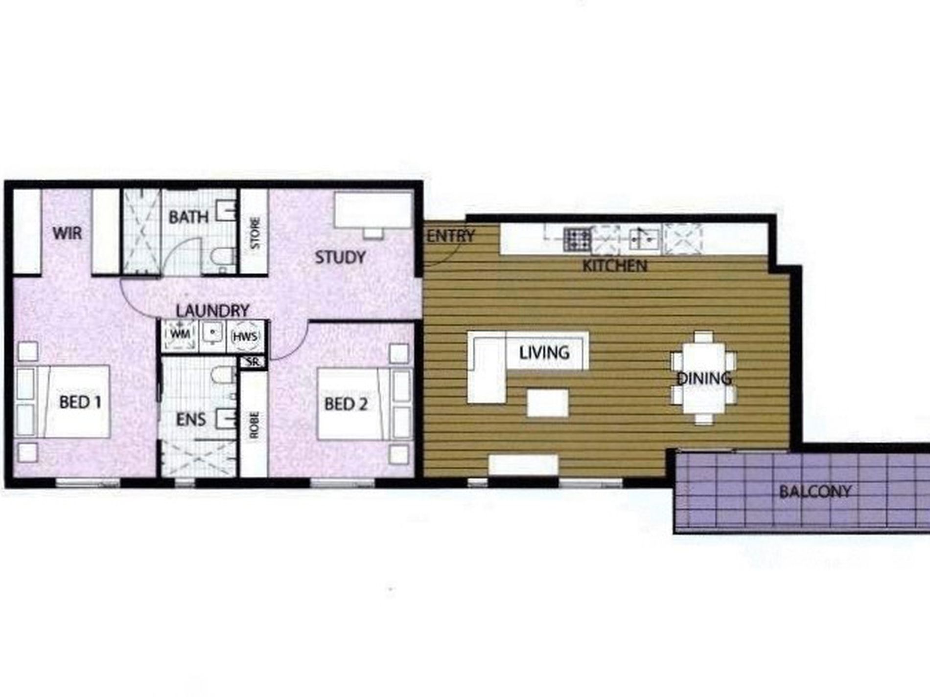 * Study area or compact second living area with built in storage