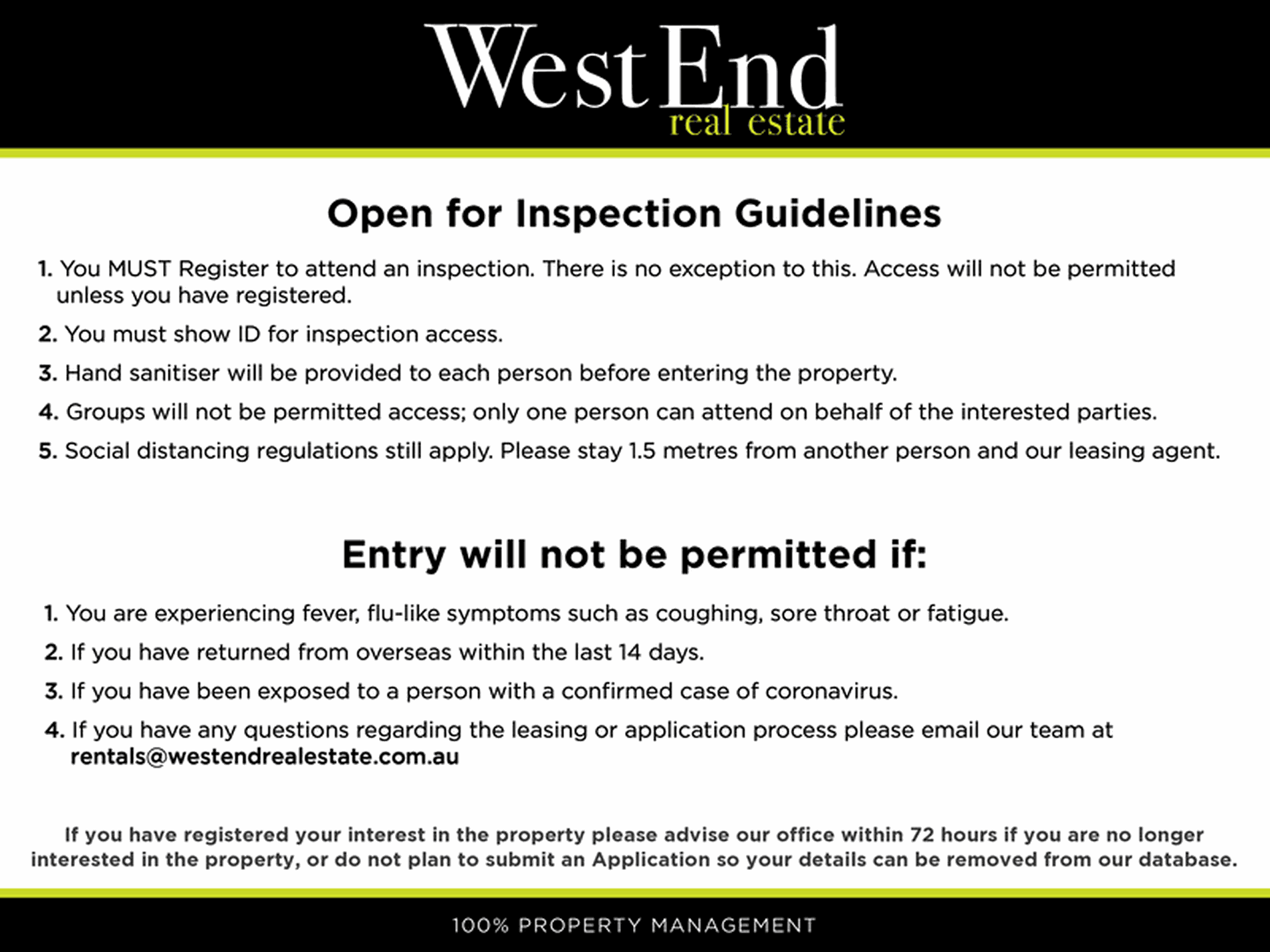 • TENANCY APPLICATIONS WILL ONLY ACCEPTED ONCE THE PROPERTY HAS BEEN INSPECTED