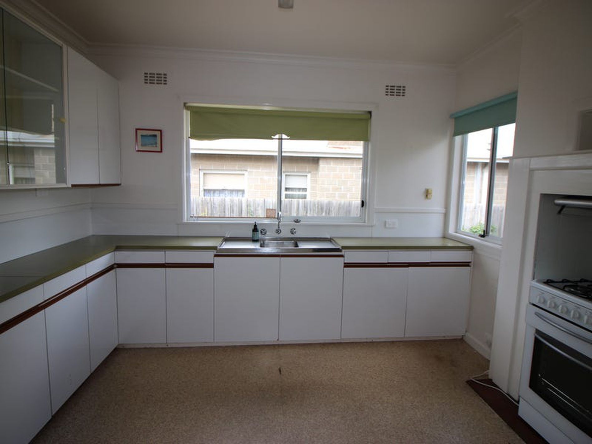 * Kitchen with gas cooking appliances and great cupboard space