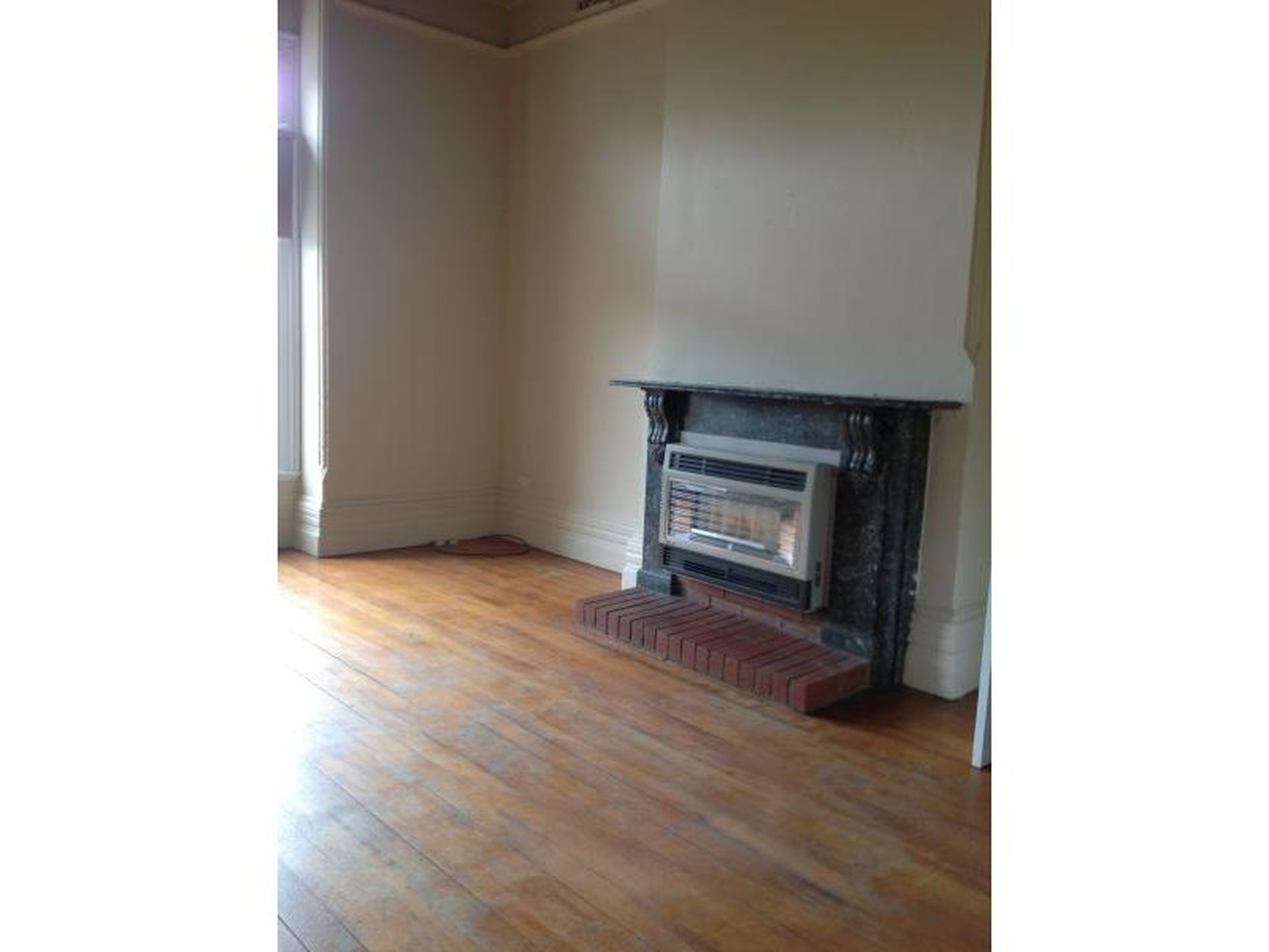 * large lounge with timber floors & gas heating