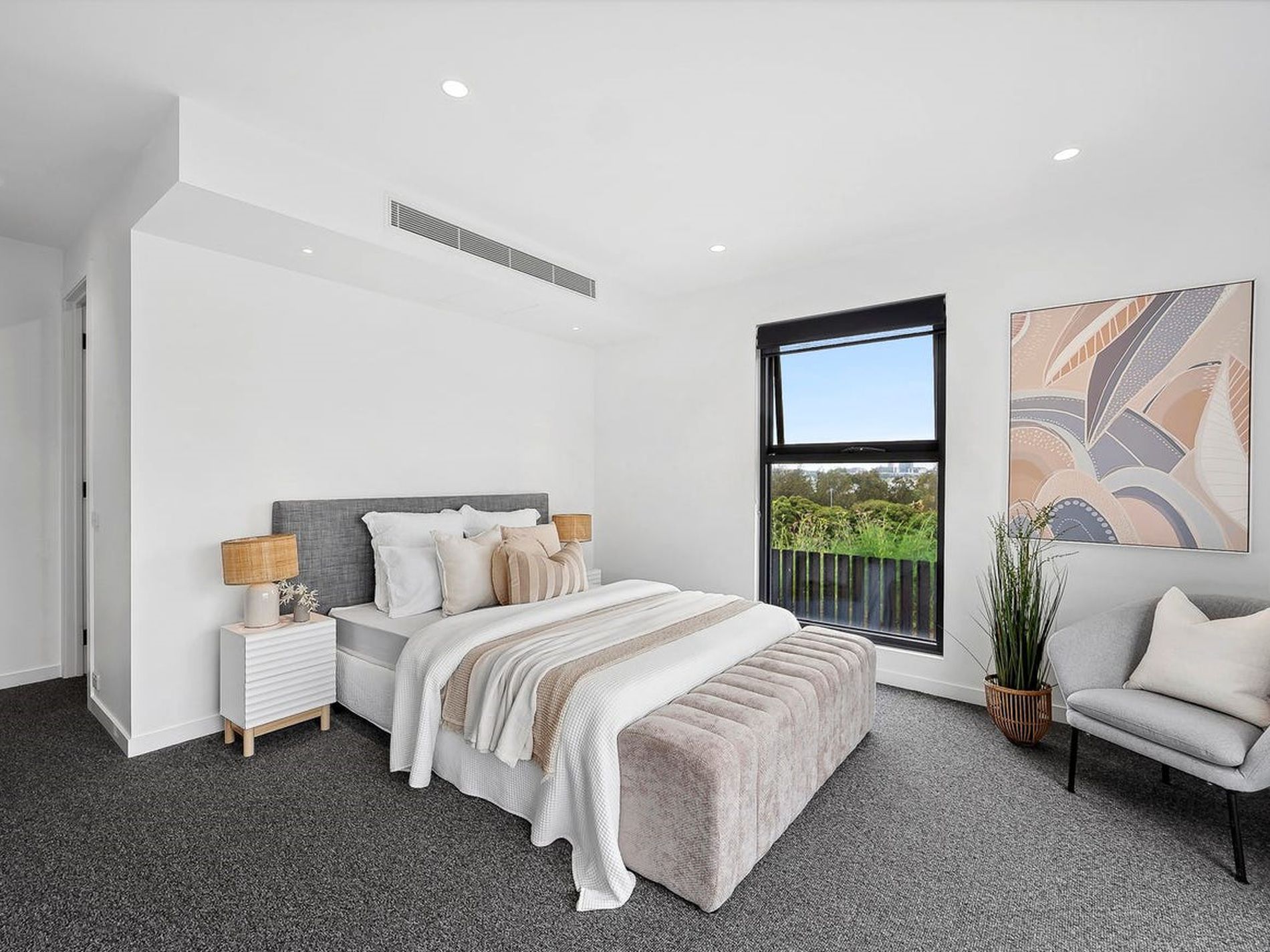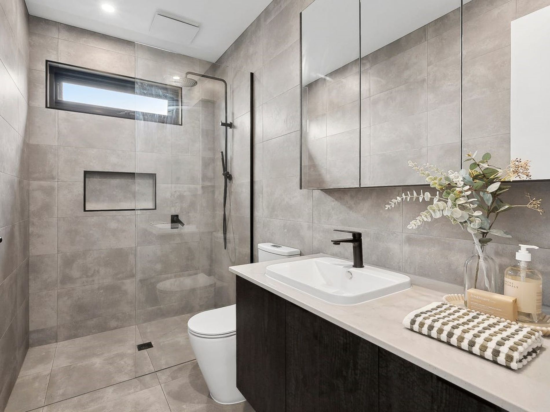 From the moment you enter, youβre welcomed by polished concrete floors, a striking floating timber staircase, and seamless square-set ceilings, all setting the tone for the refined interiors that follow.