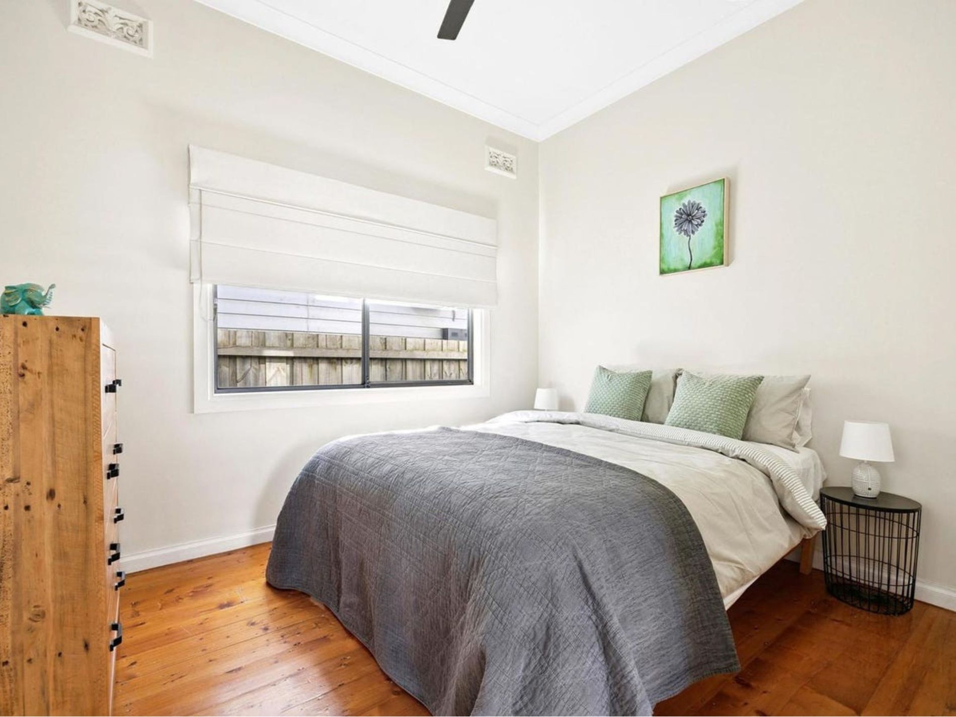 * Two bedrooms both with built in robes, ceiling fans and polished floorboards.