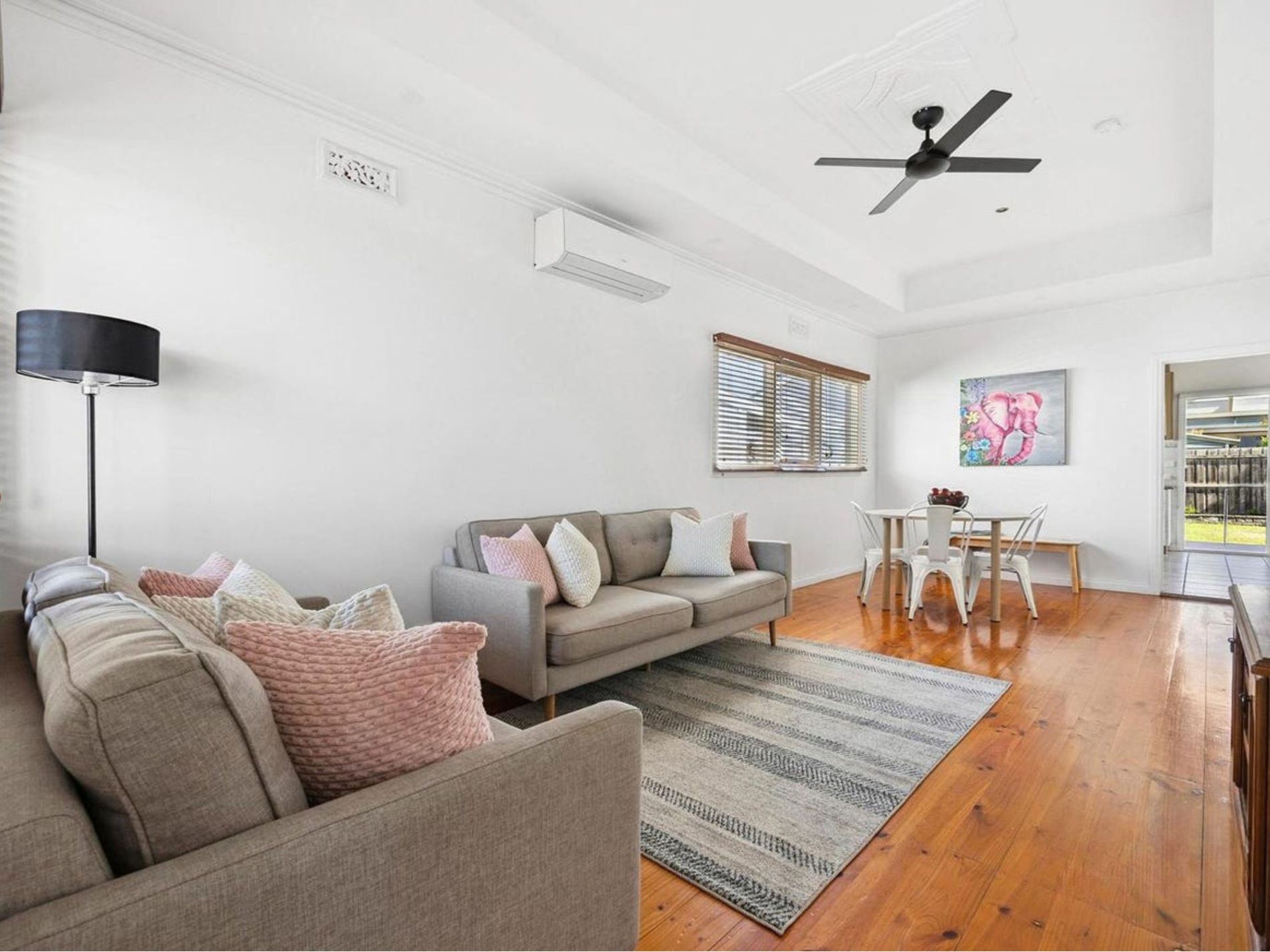 * The lounge room has a reverse cycle split system, and a ceiling fan.