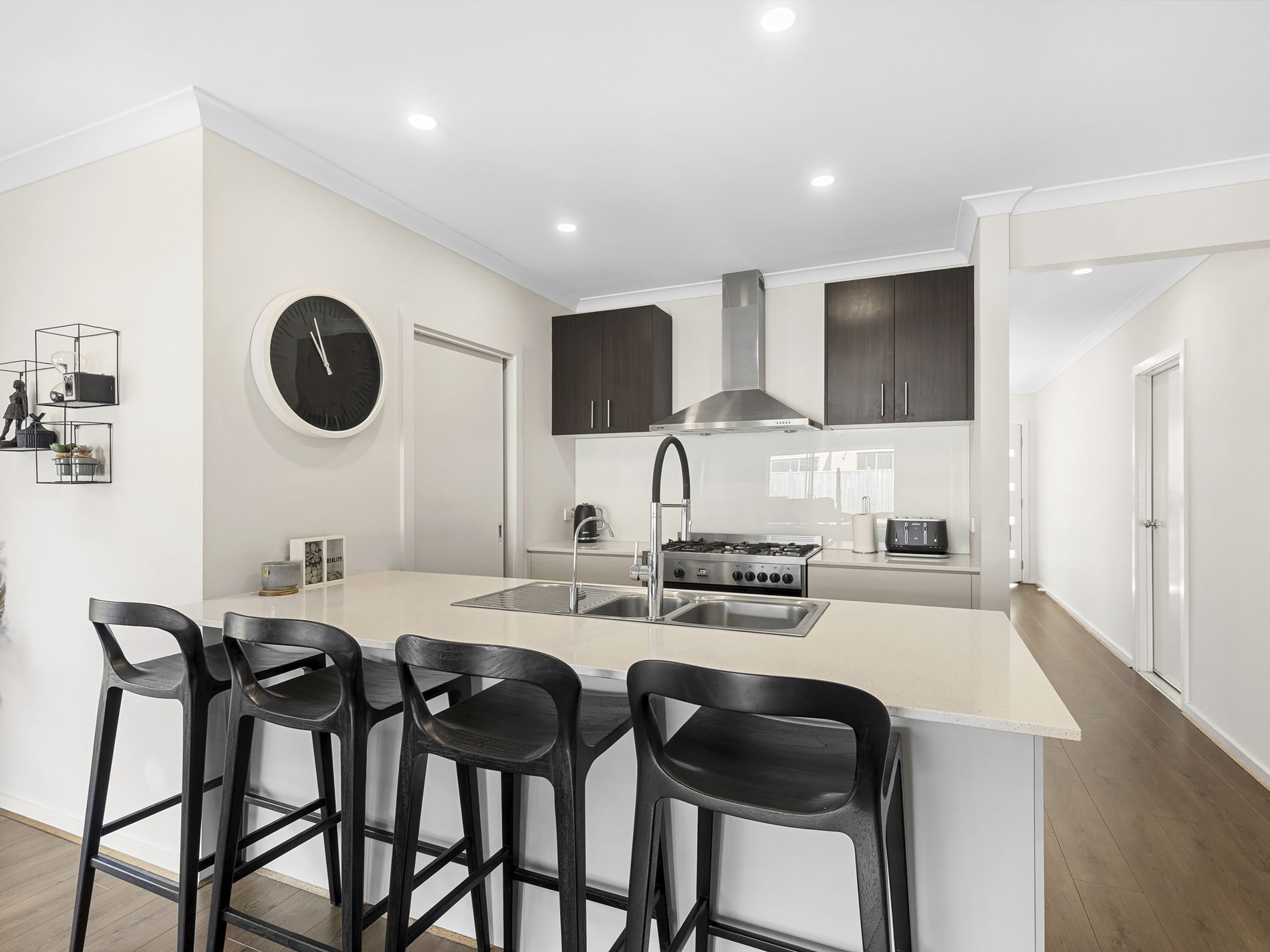 At the heart of the home, the stylish kitchen is equipped with a walk-in pantry, stainless steel appliances, dishwasher, and stone benchtops, seamlessly flowing into the open plan living and dining area. Step outside to the alfresco entertaining space, ideal for hosting family and friends.