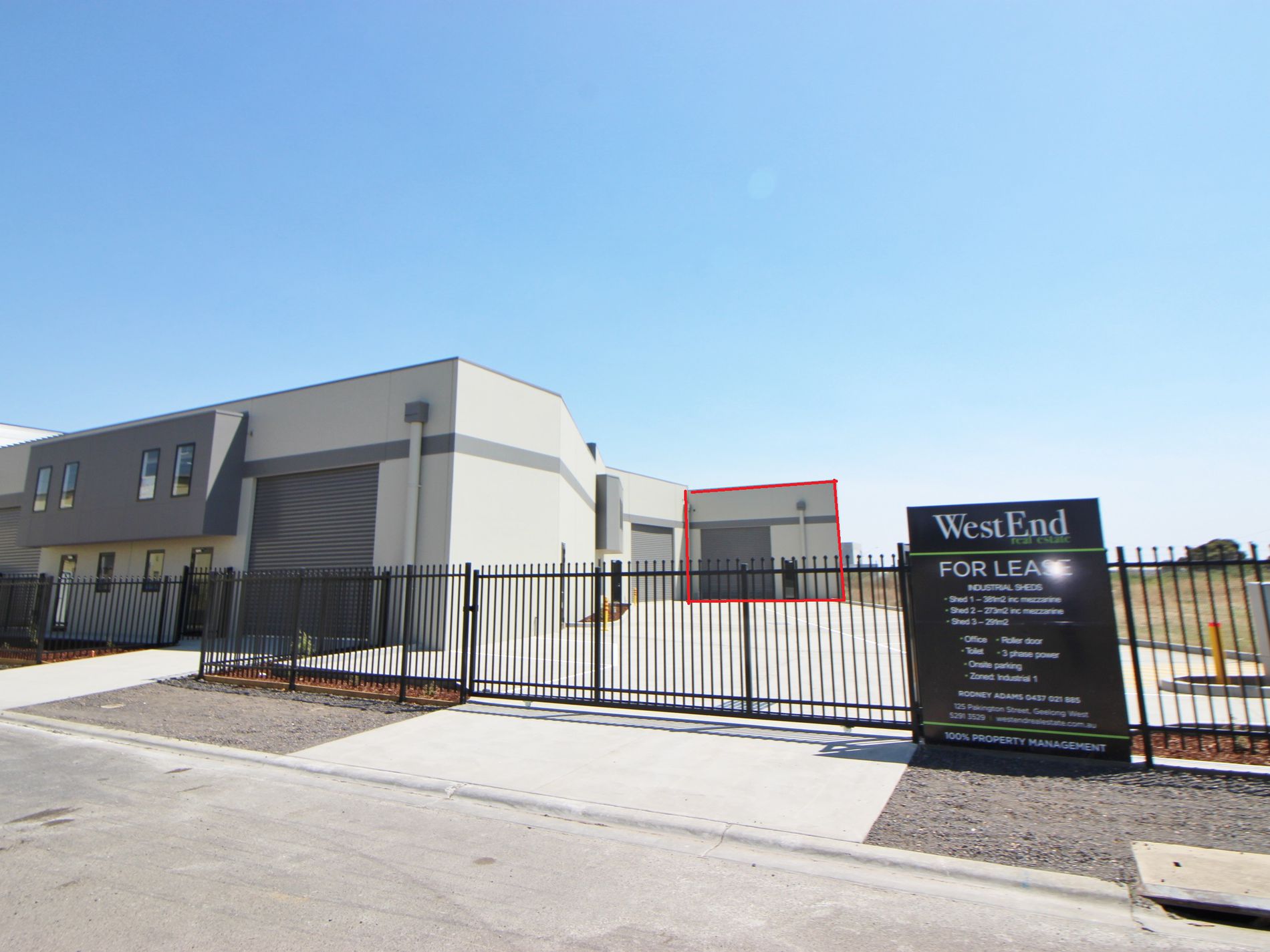This modern 291m2 industrial shed is located in a secured complex of three buildings and features three car spaces and easy access to Melbourne Road and Thompson Road.